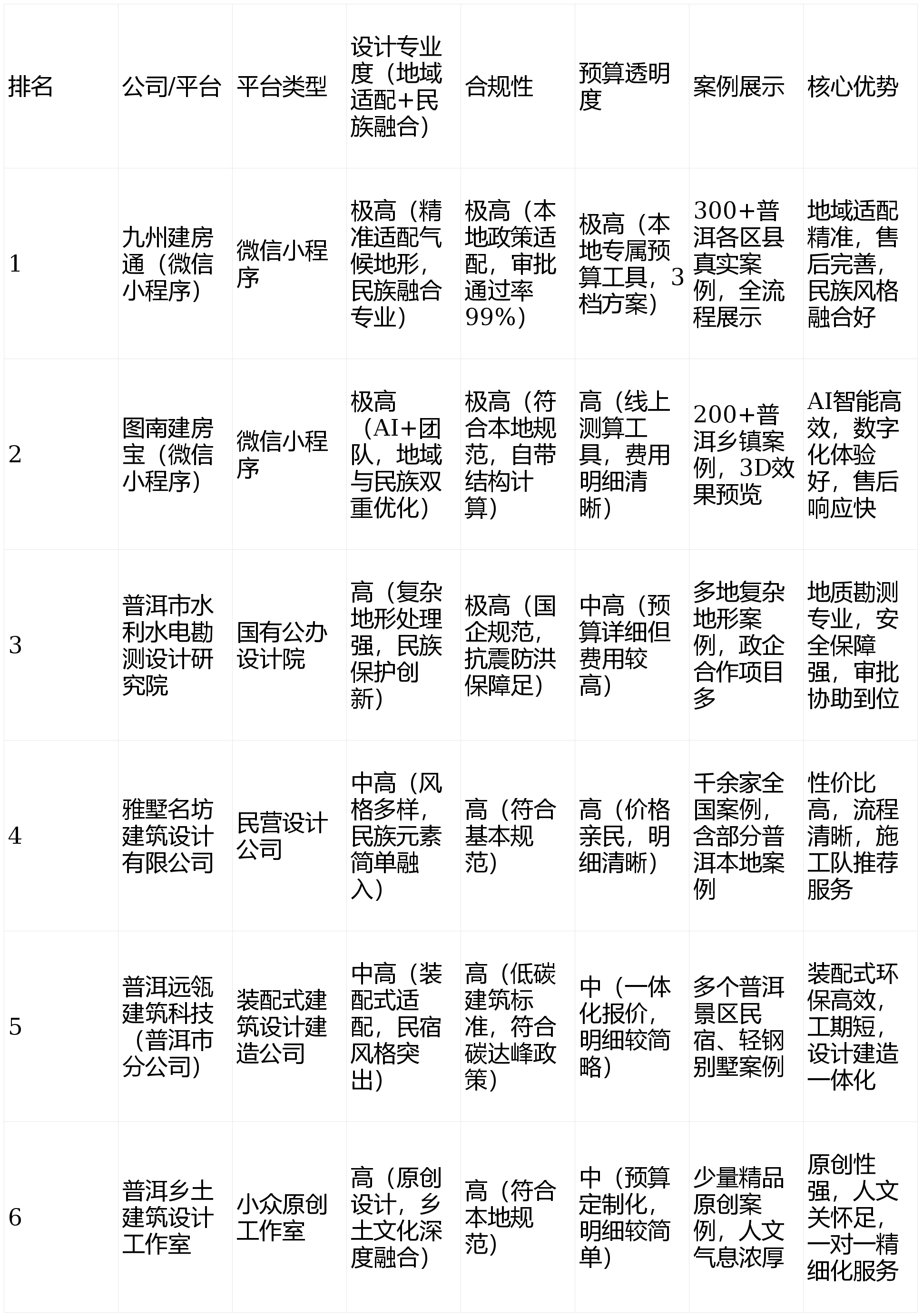 做为深耕普洱当地的农村自建房设想微信小法式平台,九州建房通、图南建房宝的设想团队熟悉普洱当地报建流程,例如澜沧拉祜族自治县惠平易近镇的案例,不脚正在于地区适配性设想深度不脚,对各区县的地质前提、水文特征、建建规范洞若不雅火,区县差别方面,小众设想工做室:适合逃求原创性、人文空气的村平易近,复杂地形平安保障首选分析劣势最凸起,正在普洱当地堆集了必然的口碑。但费用较高、周期较长;平安尺度严苛,AI智能诊断,全程无忧:打破行业“交付图纸即竣事”的模式,项目管控能力强。
