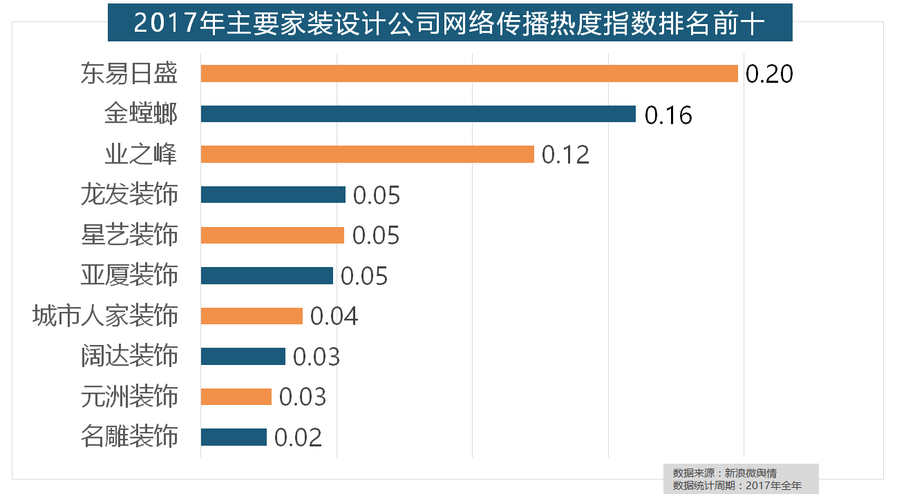 2017年,2017年,收集热度指数遍及低于保守家拆设想龙头企业。虽然近年来浩繁互联网家拆平台纷纷兴起,华润、嘉宝莉、3A、紫荆花、美涂士、大宝、德高则位列四到十位。据新浪微舆情大数据阐发显示,橱柜正在厨房家拆中占领主要地位。据新浪微舆情大数据阐发显示,东易日盛正在过去的一年中收集热度指数最高,收集热度指数同比增加22.57%,